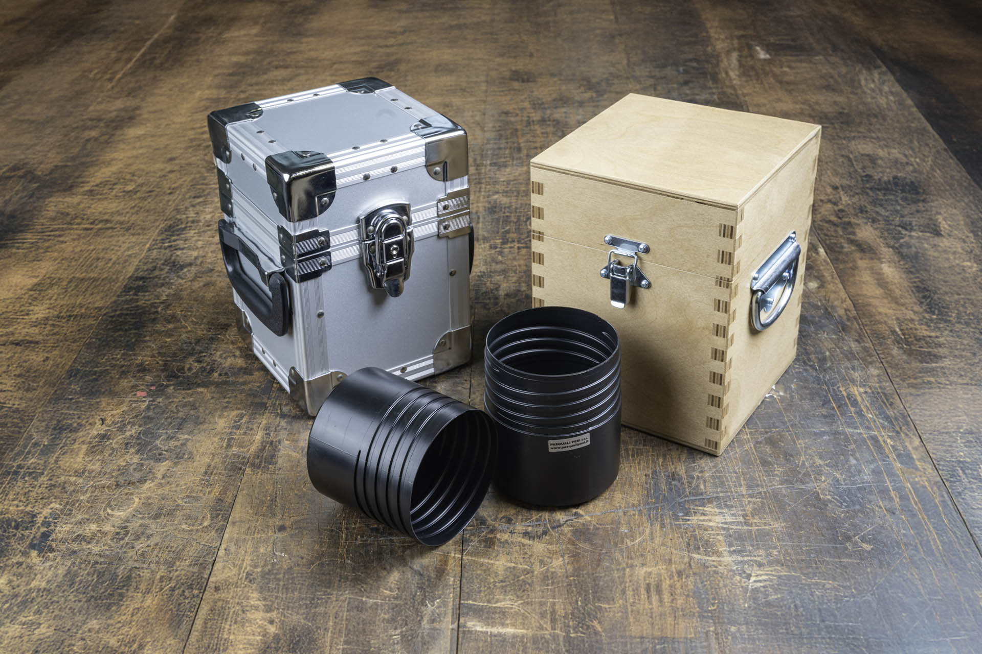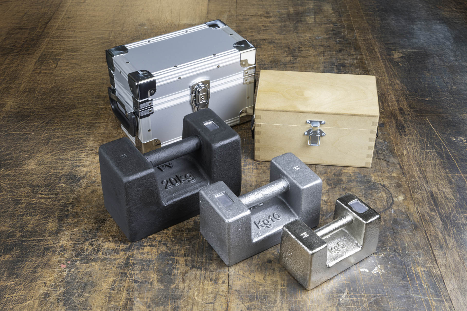 Contenitori in plastica, legno e alluminio per pesi singoli da 1 mg a 50 kg.